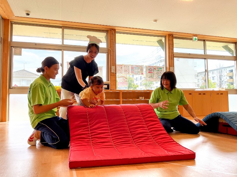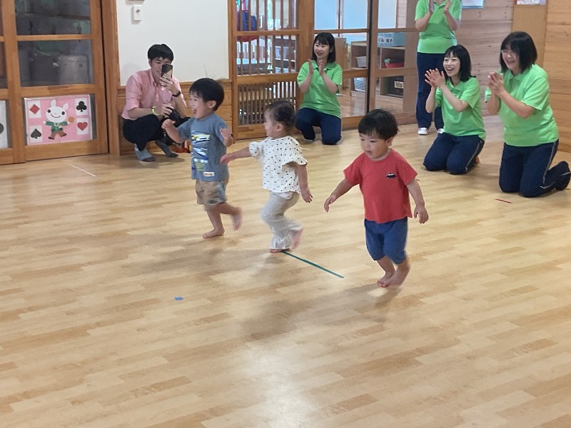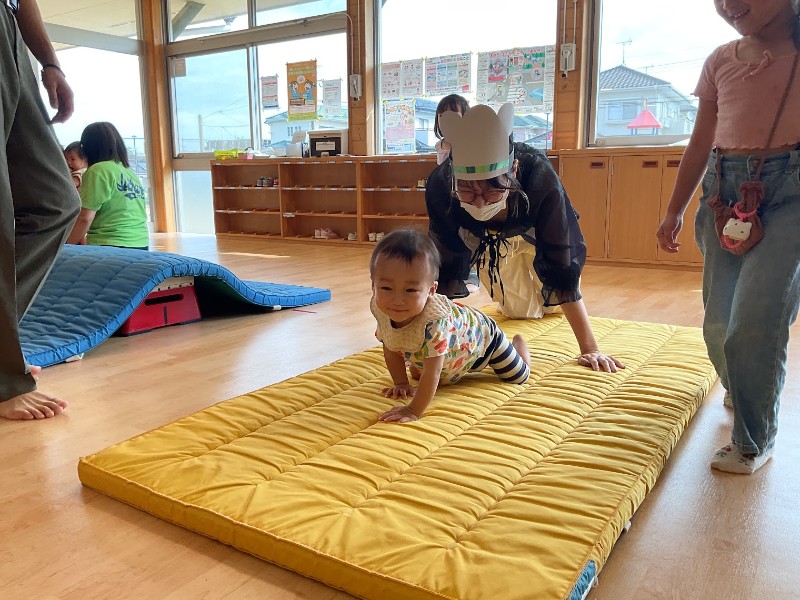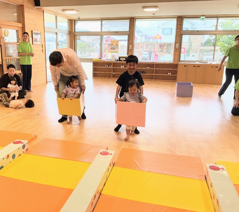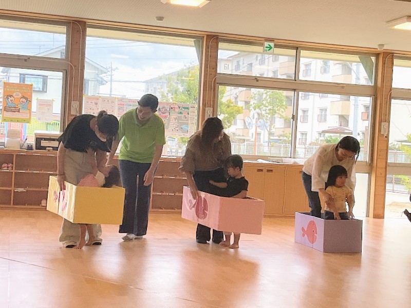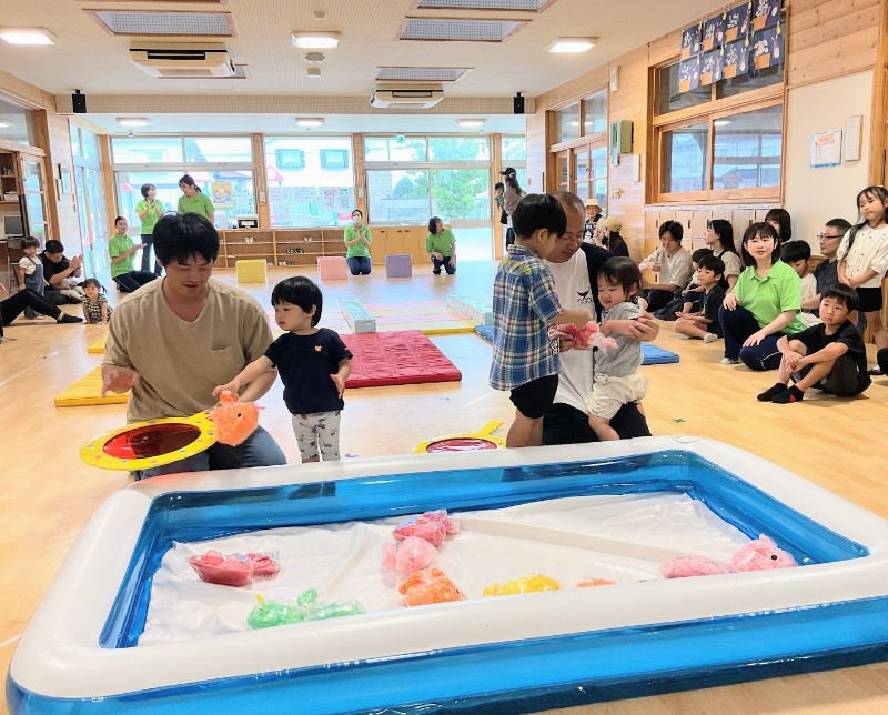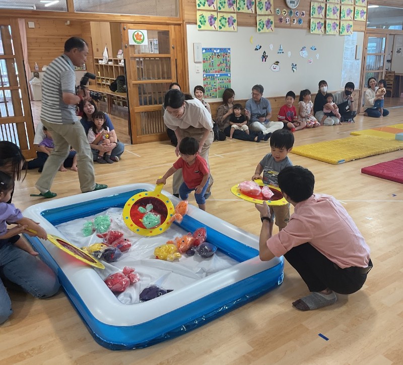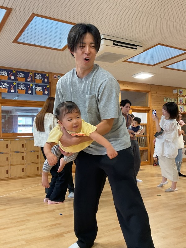 親子レクリエーション 2025.10.04 飯原保育園のお友達と一緒に親子レリエーションをしました。 親子でふれあい遊びをしたり、アンパンマンリレーや、魚釣りゲーム、 かけっこ等、楽しかったね。 保護者の皆様、たくさんのご参加とご協力ありがとうございました。