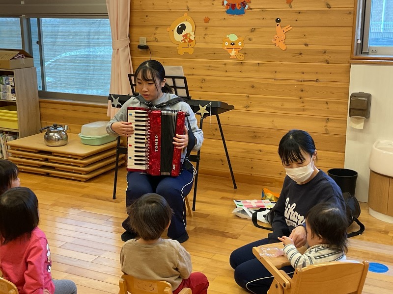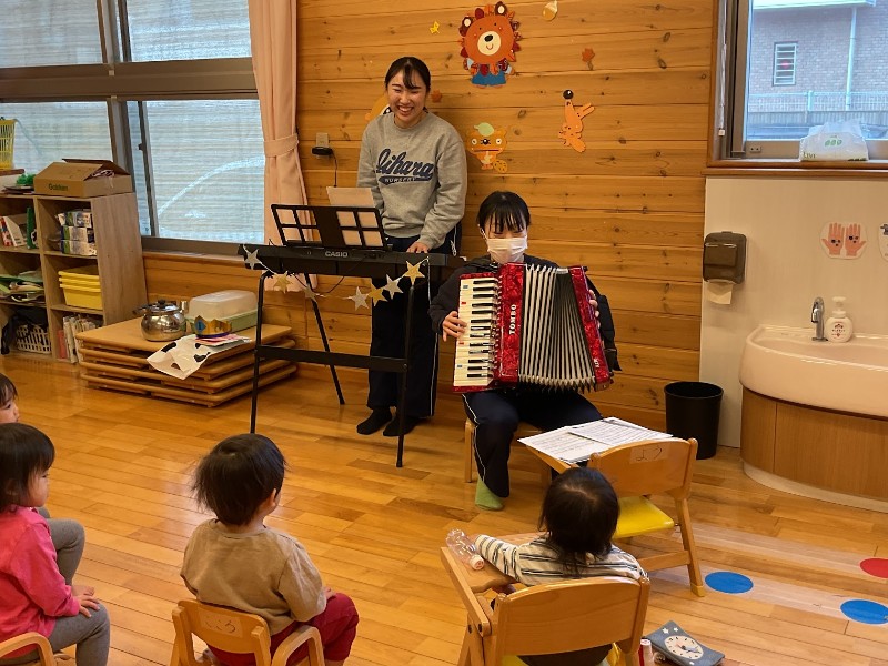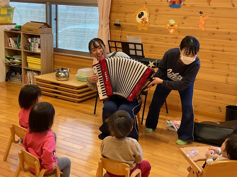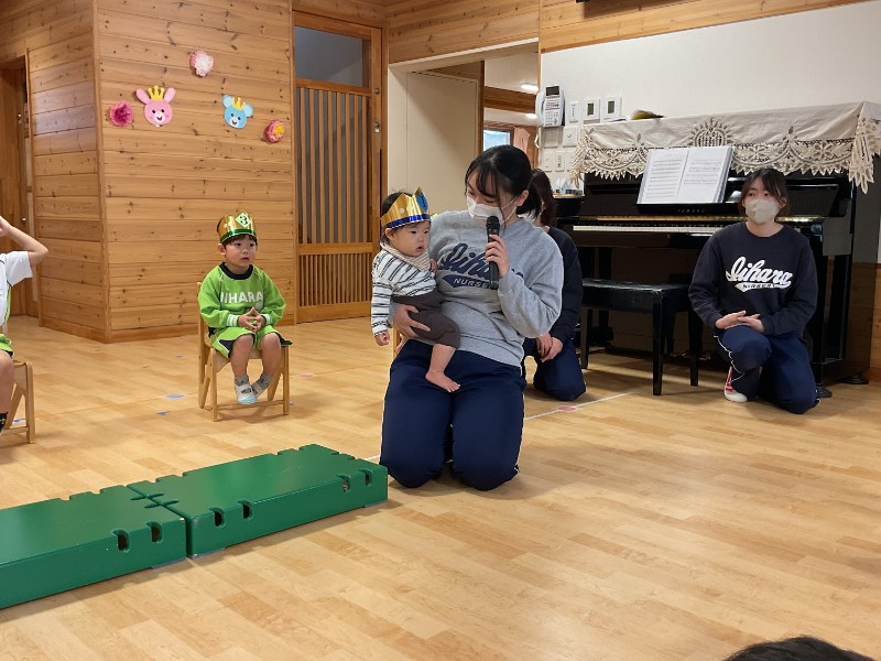 12月生まれお誕生会 2025.12.04 12月生まれのお友達をお祝いしました。 12月に入園したばかりですが、少しづつ保育園にも慣れてきているようです。 飯原保育園のお友達の前でも先生と一緒に紹介することができました。 保育園でまたたくさん遊ぼうね!! お誕生日おめでとうございます。